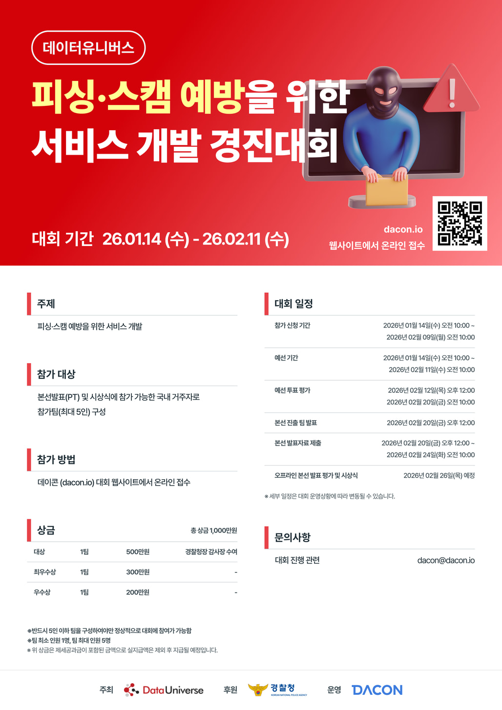 대회 홈페이지 내 규칙 탭 (피싱·스캠 예방을 위한 서비스 개발 경진대회 - DACON) 참고하여