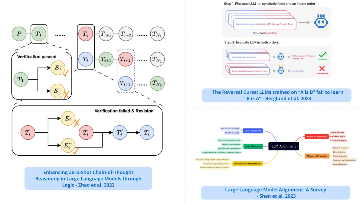 - 'a는 b'라는 형식의 문장에 대해 학습된 인공신경망은 그 반대 방향인 'b는 a'로 자동 일반화되지 않는다는 사실, 즉 반전 저주를 발견하고, 가상의 문장에 대한 인공신경망을 미세 조정하고 모델 크기와 모델군 전반에 걸쳐 그 효과를 입증합니다. llm-reasoning