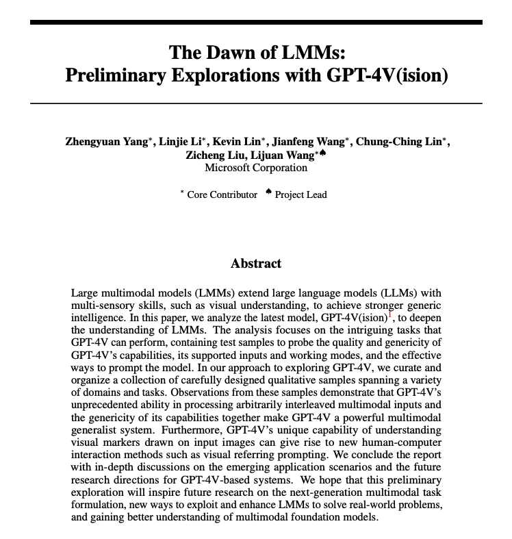 LMM의 여명기: GPT-4V(ision)를 사용한 예비 탐색 / The Dawn of LMMs: Preliminary Explorations with GPT-4V(ision)