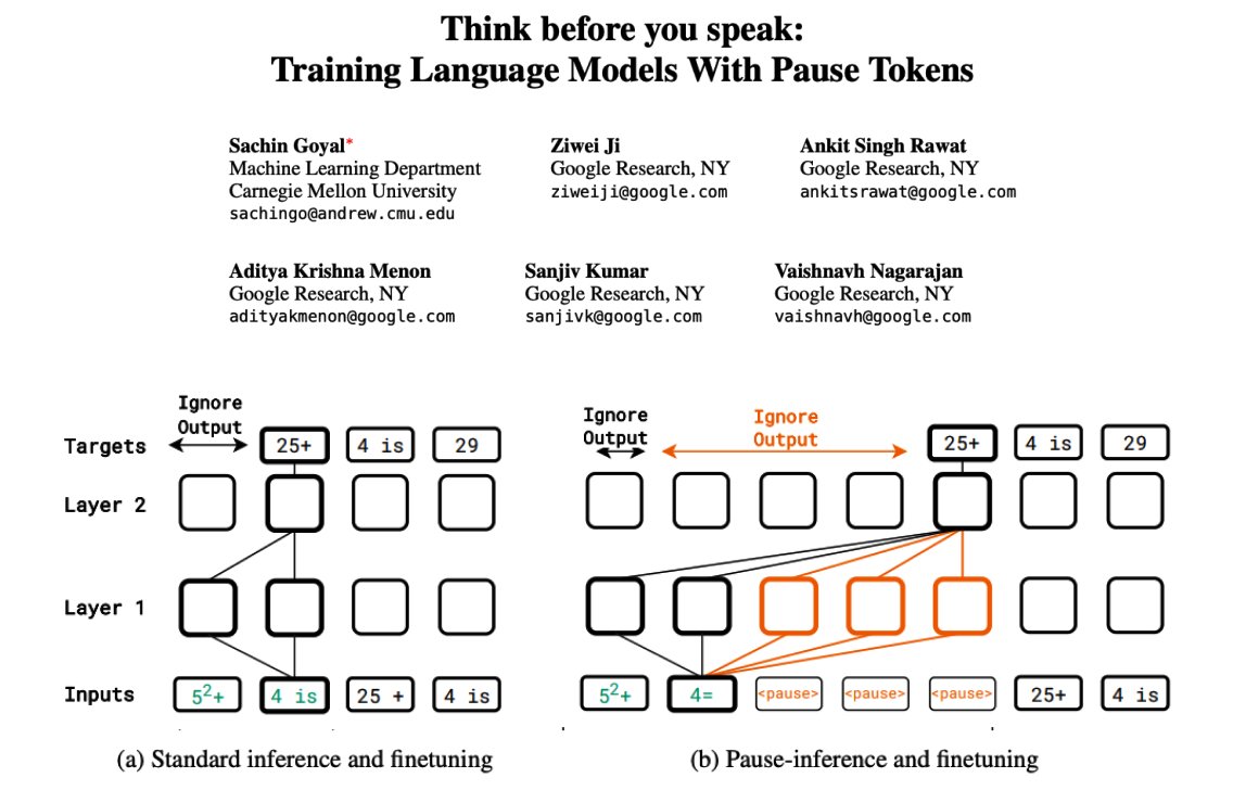 말하기 전에 먼저 생각하세요: 일시 정지 토큰으로 언어 모델 학습하기 / Think before you speak: Training Language Models With Pause Tokens