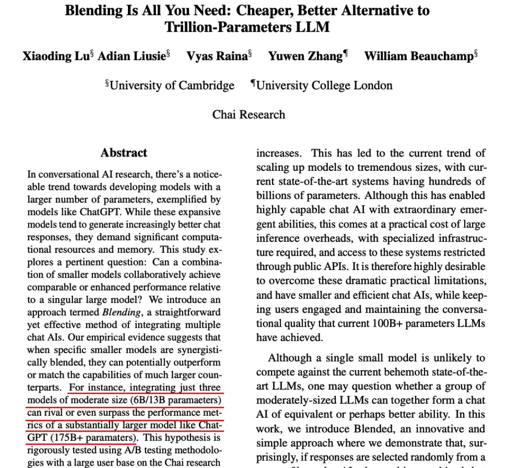 블렌딩만 있으면 됩니다: 조 단위 매개변수를 갖는 LLM을 대체하는 더 저렴하고 더 나은 대안 / Blending Is All You Need: Cheaper, Better Alternative to Trillion-Parameters LLM