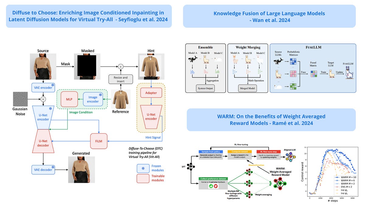 - 여러 보상 모델을 미세 조정한 다음 가중치 공간에서 평균을 내는 가중 평균 보상 모델(warm)을 도입하여 기존 예측 앙상블에 비해 효율성을 개선하고, LLM 예측의 품질과 정렬을 개선합니다.