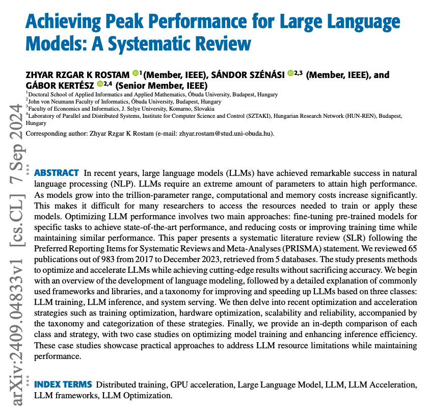 대규모 언어 모델을 위한 최고의 성능 달성하기: 체계적인 검토 / Achieving Peak Performance for Large Language Models: A Systematic Review