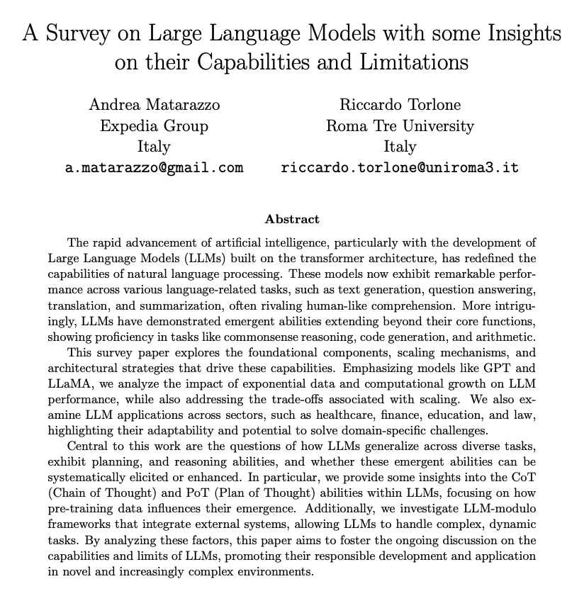 대규모 언어 모델에 대한 서베이를 통해 그 기능과 한계에 대한 인사이트를 얻으세요 / A Survey on Large Language Models with some Insights on their Capabilities and Limitations