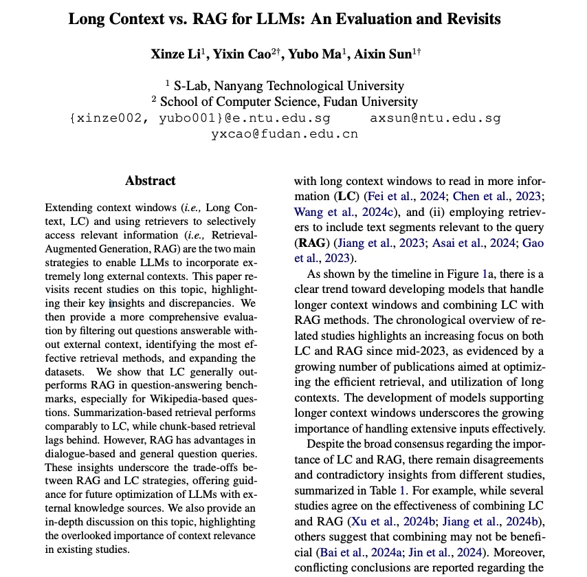LLM을 위한 긴 컨텍스트 대 RAG: 평가 및 재검토 / Long Context vs. RAG for LLMs: An Evaluation and Revisits