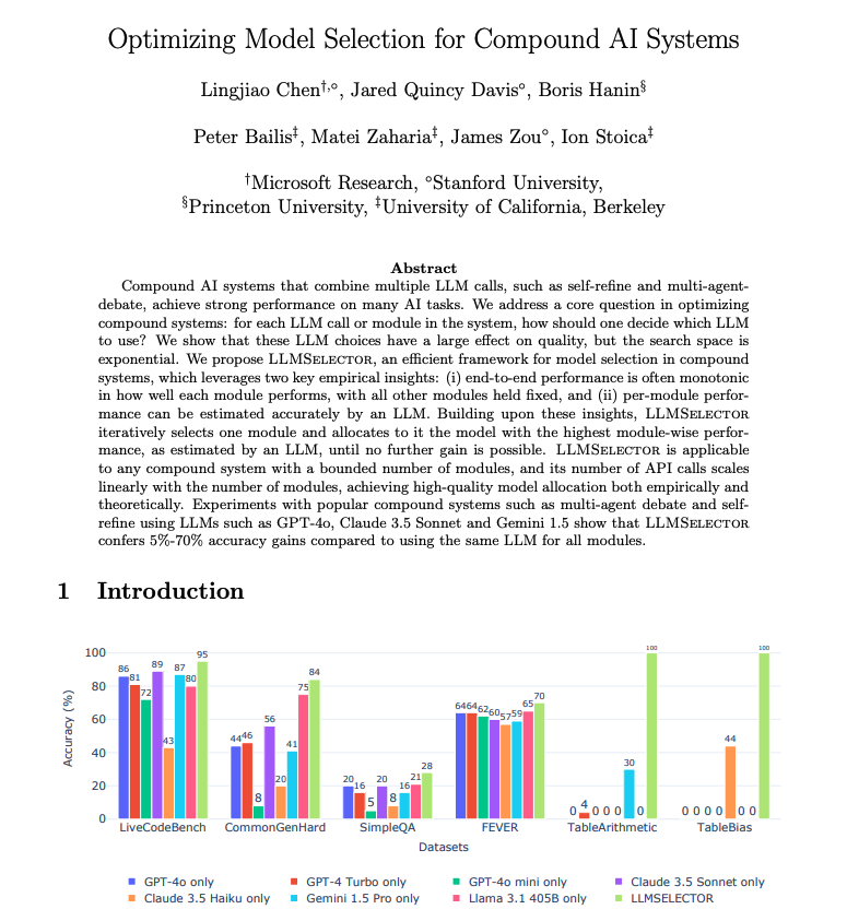 Researchers from Microsoft Research and collaborators introduce LLMSelector, a framework to improve multi-call LLM pipelines by selecting the best model per module instead of using one LLM everywhere.