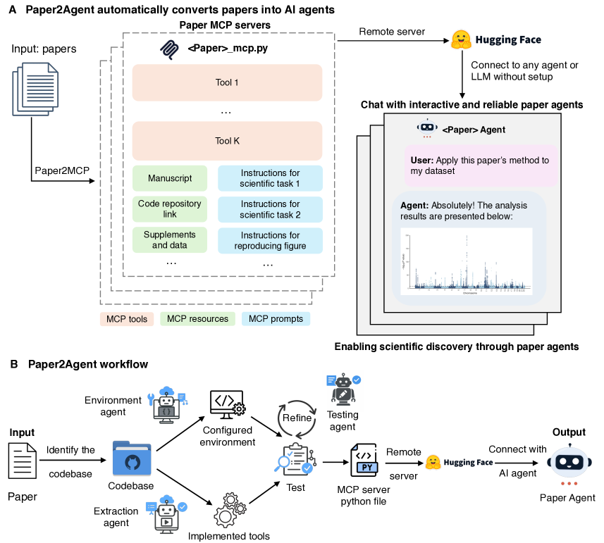 AI 에이전트의 발전: 최근 연구들은 논문을 AI 에이전트로 변환하는 방법을 모색하고 있습니다. 예를 들어, Paper2Agent는 연구 결과를 능동적인 시스템으로 전환하여 사용자들이 더 쉽게 활용할 수 있도록 합니다. 이러한 접근은 연구 결과의 전파와 재사용을 촉진하며, AI가 연구 보조 역할을 수행할 수 있는 새로운 패러다임을 제시합니다.