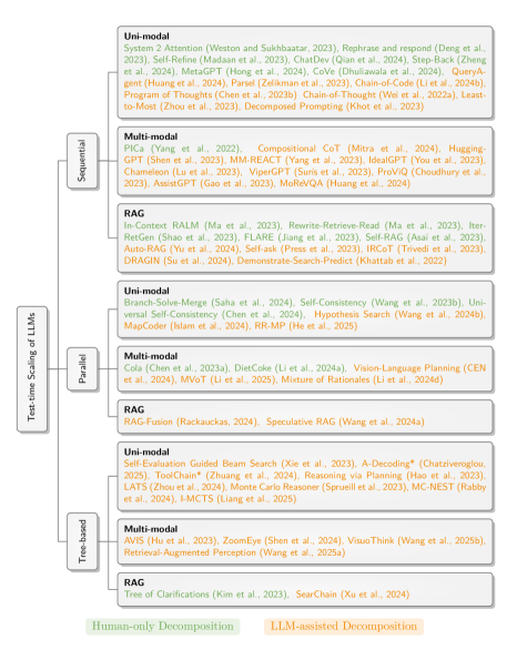 이 논문은 LLM의 테스트 시간 스케일링 방법을 하위 문제 구조 관점에서 체계적으로 정리하고, 다양한 접근 방식의 강점과 약점을 분석하여 향후 연구 방향을 제시하는 데 기여하고 있다. 이러한 연구는 LLM의 성능 향상뿐만 아니라, 인공지능 시스템의 전반적인 신뢰성과 효율성을 높이는 데 중요한 기초 자료로 활용될 수 있을 것이다.