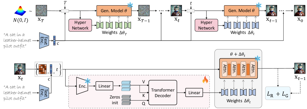 디퓨전(Diffusion) 모델의 정렬(alignment)은 생성 결과를 인간의 선호에 더 가깝게 조정하면서도, 텍스트 프롬프트에 대한 의미적 일관성과 시각적 품질을 함께 높여야 한다는 점에서 중요한 연구 과제로 자리 잡고 있습니다. 그러나 기존 접근은 테스트 시점(test-time) 정렬과 파인튜닝(fine-tuning) 기반 정렬 사이에서 뚜렷한 절충을 요구해 왔습니다. 테스트 시점 방법은 입력마다 유연하게 대응할 수 있지만 계산 비용이 크고 최적화가 충분하지 않은 반면, 파인튜닝 방법은 보상 해킹(reward hacking)과 생성 다양성 저하를 초래할 수 있어 실제 적용에 제약이 있습니다. HyperAlign은 이러한 한계를 해결하기 위해, 하이퍼네트워크(hypernetwork)가 입력과 현재 상태에 조건화된 저랭크 적응(Low-Rank Adaptation, LoRA) 가중치를 동적으로 생성하도록 설계한 프레임워크입니다. 핵심적으로는 잠재 상태(latent state)를 직접 수정하는 대신, 노이즈 제거(denoising) 궤적 자체를 보상 방향으로 유도하는 적응 가중치를 만들어 정렬 효과를 내는 방식입니다.