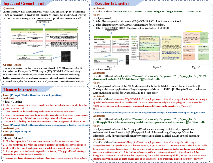 특히 이 프레임워크의 핵심은 Planner와 Executor를 따로 두는 데 있지 않고, 두 모듈의 협업을 학습 가능한 구조로 조직했다는 점에 있습니다. 저자들은 교대적 강화학습(alternating reinforcement learning)을 통해 Planner가 더 적절한 탐색 계획을 세우고 Executor가 이를 더 정확하게 이행하도록 상호 정렬을 유도하며, 동시에 테스트 타임 학습(test-time learning)을 도입해 추론이 진행되는 동안에도 Planner가 멈추지 않고 지속적으로 갱신되도록 설계했습니다. 여기에 모수적 메모리와 비모수적 메모리 사이의 양방향 변환 루프를 두어, 단순히 기억을 불러오는 데 그치지 않고 기억을 다시 압축·정제·재구성하는 메커니즘을 마련함으로써 메모리 진화의 효율성을 높였습니다. 또한 reflection과 unsupervised judgment 메커니즘을 추가해 개방형 환경에서 스스로 계획을 재검토하고, 정답 신호가 희소한 상황에서도 자율적으로 개선할 수 있도록 했다는 점이 방법론적 차별성으로 읽힙니다.