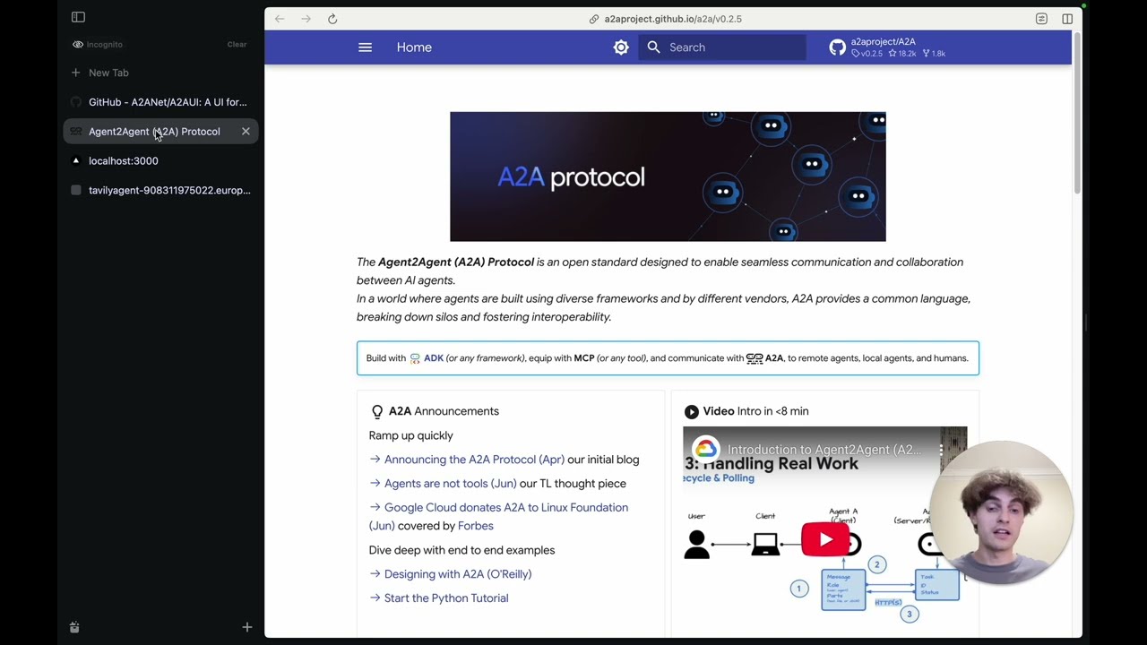 A2A UI는 A2A 프로토콜을 시각적으로 조작할 수 있는 웹 인터페이스 프로젝트입니다. 이 프로젝트는 React, Next.js, MUI로 개발되었으며, A2A 기반의 에이전트와 상호작용할 수 있는 브라우저 형태의 UI를 제공합니다. 마치 초기 웹 브라우저가 웹페이지를 탐색할 수 있는 통로였던 것처럼, A2AUI는 에이전트 세계를 시각적으로 탐색할 수 있는 창이 되어줄 수 있습니다.