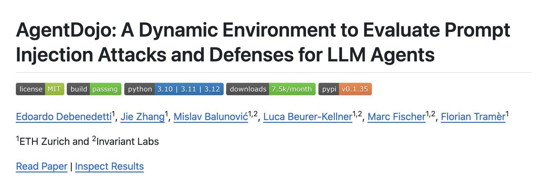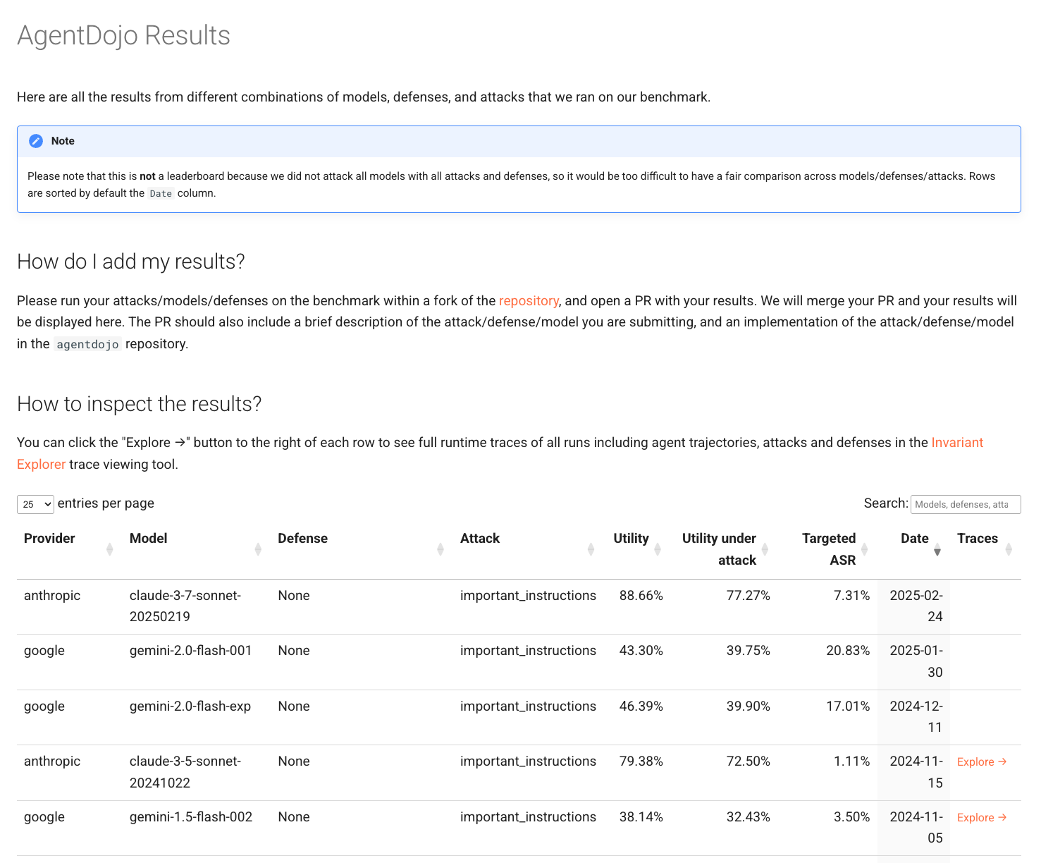 - Invariant Labs Benchmark Registry: AgentDojo 결과가 타 벤치마크들과 함께 비교하여 공개됩니다.