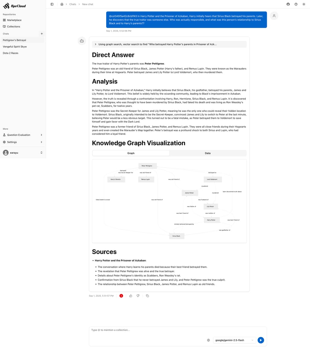 ApeRAG 홈페이지)에서도 강조하고 있듯, ApeRAG는 “Production-Ready RAG Platform with Graph, Vector & Full-Text Search”라는 목표를 전면에 내세우며, 실제 운영 환경에서 확장성과 안정성을 제공하는 플랫폼으로 자리매김하고 있습니다. 특히, Kubernetes 및 Docker 기반 배포 옵션을 지원하여 클라우드 환경에서도 손쉽게 확장 가능한 구조를 제공합니다.