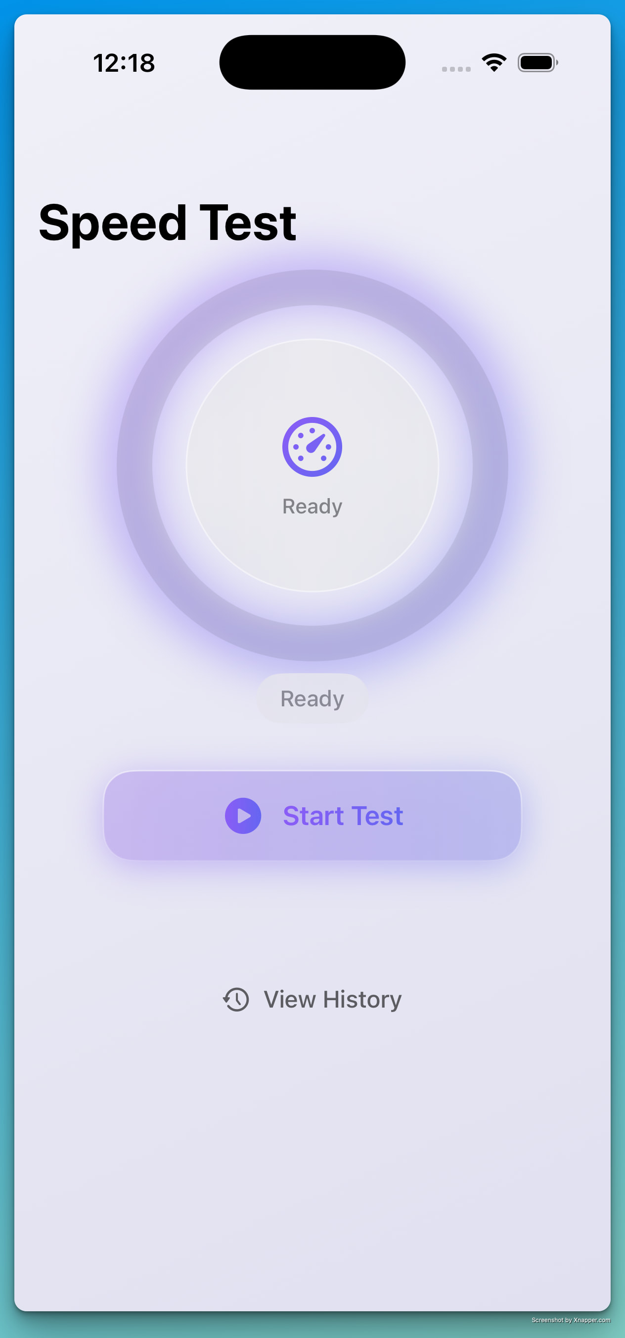 단일 프롬프트("Create an iOS SpeedTest app with SwiftUI, minimalist design with liquid glass effects")로 15분 가량만에 개발한 결과 예시