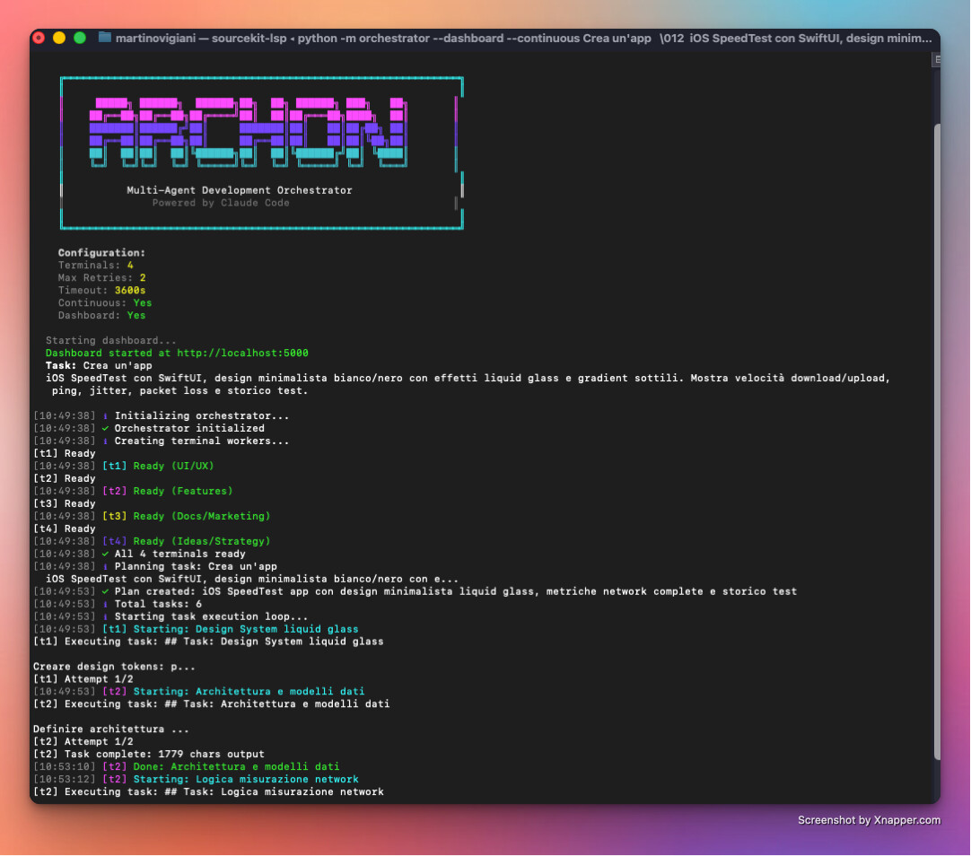 사용자가 "iOS 속도 측정 앱을 만들어줘"라고 지시하면, Archon은 이를 계획(Plan)하고, 각 터미널에 작업을 위임(Delegate)하며, 터미널 간의 진행 상황을 조율(Coordinate)하여 최종적으로 작동하는 소프트웨어(Deliver)를 만들어냅니다. 특히 Claude Code CLI를 기반으로 작동하므로, Anthropic의 강력한 모델 성능을 그대로 활용하면서도 자동화된 협업 프로세스를 경험할 수 있다는 점이 큰 특징입니다.