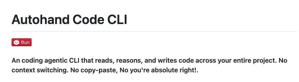 Autohand Code CLI 프로젝트 GitHub 저장소