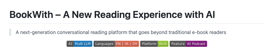 특히 BookWith는 일본어, 영어, 중국어 등 다양한 언어에 대응하며, ePub 형식의 책만 업로드하면 즉시 사용할 수 있습니다. 독서를 지식 생성 과정으로 전환하려는 BookWith의 시도는 연구자, 학생, 직장인, 책 애호가 등 다양한 독자층에게 새로운 가능성을 열어줍니다.