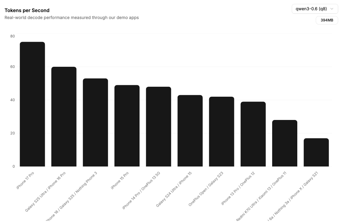 | Nothing 3 | Mid-range | 56 tok/s | 보급형 기기에서도 실사용 가능 수준 |