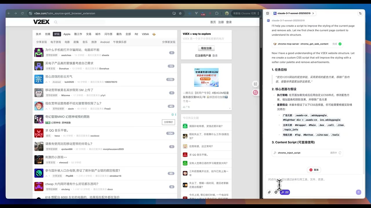 - 사용한 지시문: Help me modify the current page's style and remove advertisements.