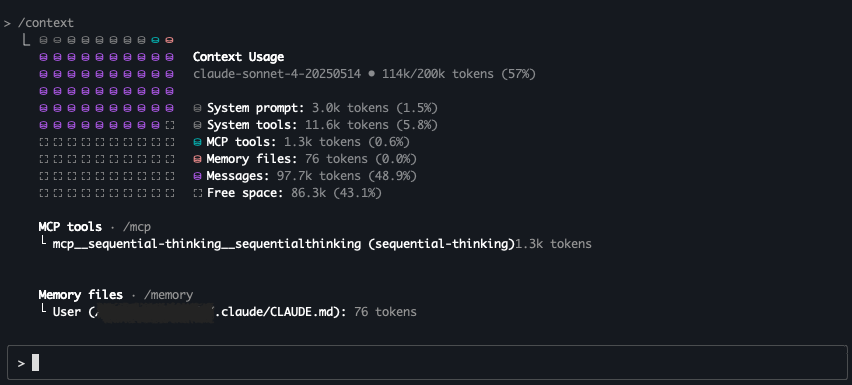 실행하면 아래와 같이 현재 Context 사용 현황을 시각화해주는데, 제법 괜찮은 것 같습니다.
