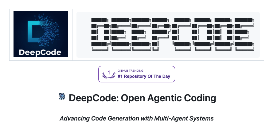 DeepCode는 홍콩대학교 데이터 인텔리전스 연구실(HKU Data Intelligence Lab)에서 개발한 AI 기반 코드 생성 플랫폼으로, 연구 논문이나 자연어로 된 요구사항을 생산 가능한 코드로 자동 변환하는 것을 목표로 합니다. 이 프로젝트는 단순한 코드 생성기를 넘어서, 여러 AI 에이전트를 조율하는 **멀티에이전트 시스템(Multi-Agent System)**을 통해 개발 전 과정을 지원합니다. 즉, 논문 속 알고리즘 구현부터 프론트엔드, 백엔드까지 자동으로 생성하여 연구자와 개발자의 부담을 크게 줄여줍니다.
