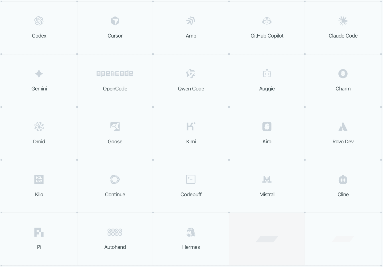 Emdash가 지원하는 프로바이더 목록에는 Claude Code, Qwen Code, Hermes Agent, Amp, GitHub Copilot, Cline, Cursor, Continue, Codebuff, Goose, Gemini CLI, Mistral Vibe 등이 포함됩니다. CLI 기반의 코딩 에이전트라면 대부분 통합 가능하도록 설계되어 있습니다.