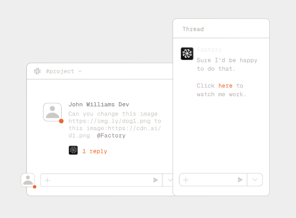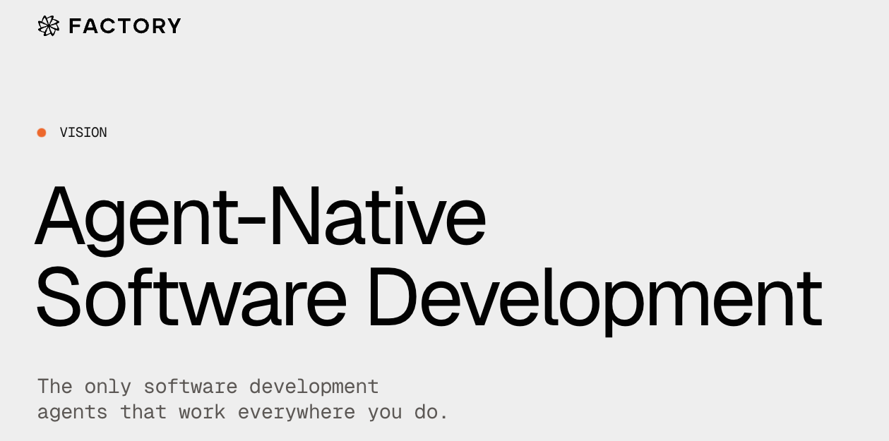 Factory는 개발자의 기존 작업 환경을 변경하지 않고도 코드 리팩토링, 인시던트 대응, 마이그레이션 등 다양한 개발 업무를 완벽하게 위임할 수 있는 에이전트 네이티브(Agent-Native) 소프트웨어 개발 플랫폼입니다. 기존의 AI 코딩 어시스턴트들이 주로 특정 IDE의 채팅 창이나 단순한 자동완성 기능에 머물렀던 것과 달리, Factory는 'Droid'라고 불리는 AI 에이전트를 IDE, 웹 브라우저, CLI, 슬랙(Slack), 그리고 프로젝트 관리 도구에 이르기까지 개발자가 일하는 모든 곳에 직접적으로 통합하는 것을 목표로 합니다.
