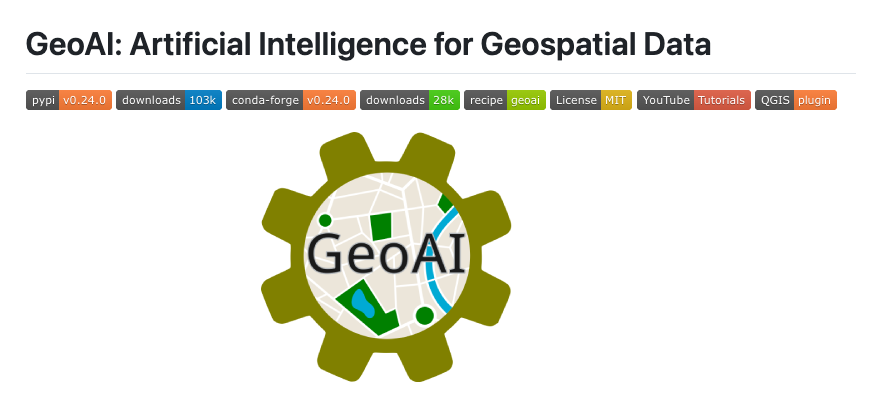 GeoAI는 인공지능(AI), 특히 딥러닝(Deep Learning) 기술을 지리공간(Geospatial) 데이터 분석에 손쉽게 적용할 수 있도록 돕는 Python 라이브러리입니다. 이 프로젝트는 PyTorch와 같은 강력한 딥러닝 프레임워크를 기반으로 구축되었으나, 복잡한 신경망 코드를 직접 작성하지 않고도 위성 이미지나 항공 사진에서 객체를 추출하거나 변화를 탐지하는 작업을 수행할 수 있게 해줍니다. 데이터의 전처리부터 모델 학습, 그리고 결과 예측까지의 전체 워크플로우를 자동화하는 것이 핵심 목표입니다.