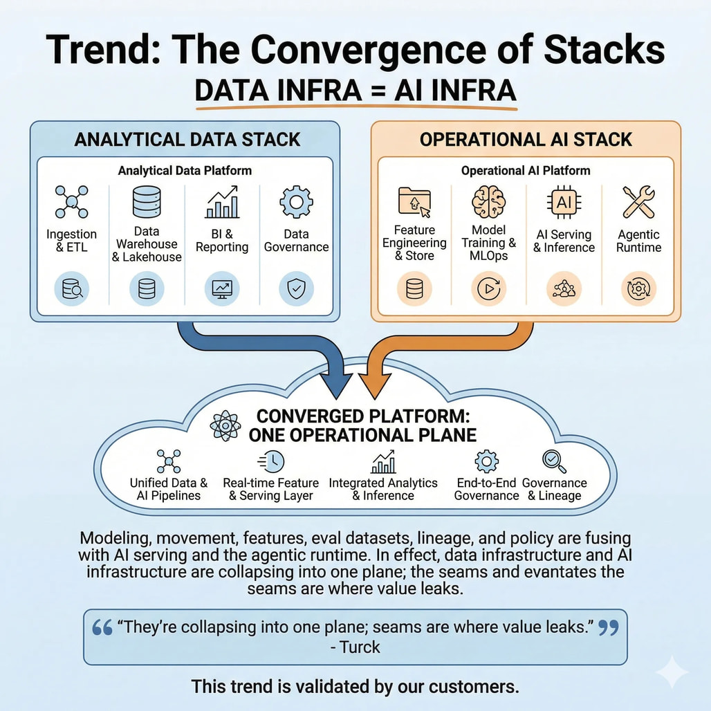- 데이터 인프라와 AI 인프라의 수렴은 실시간성과 멀티모달 요구를 촉발함