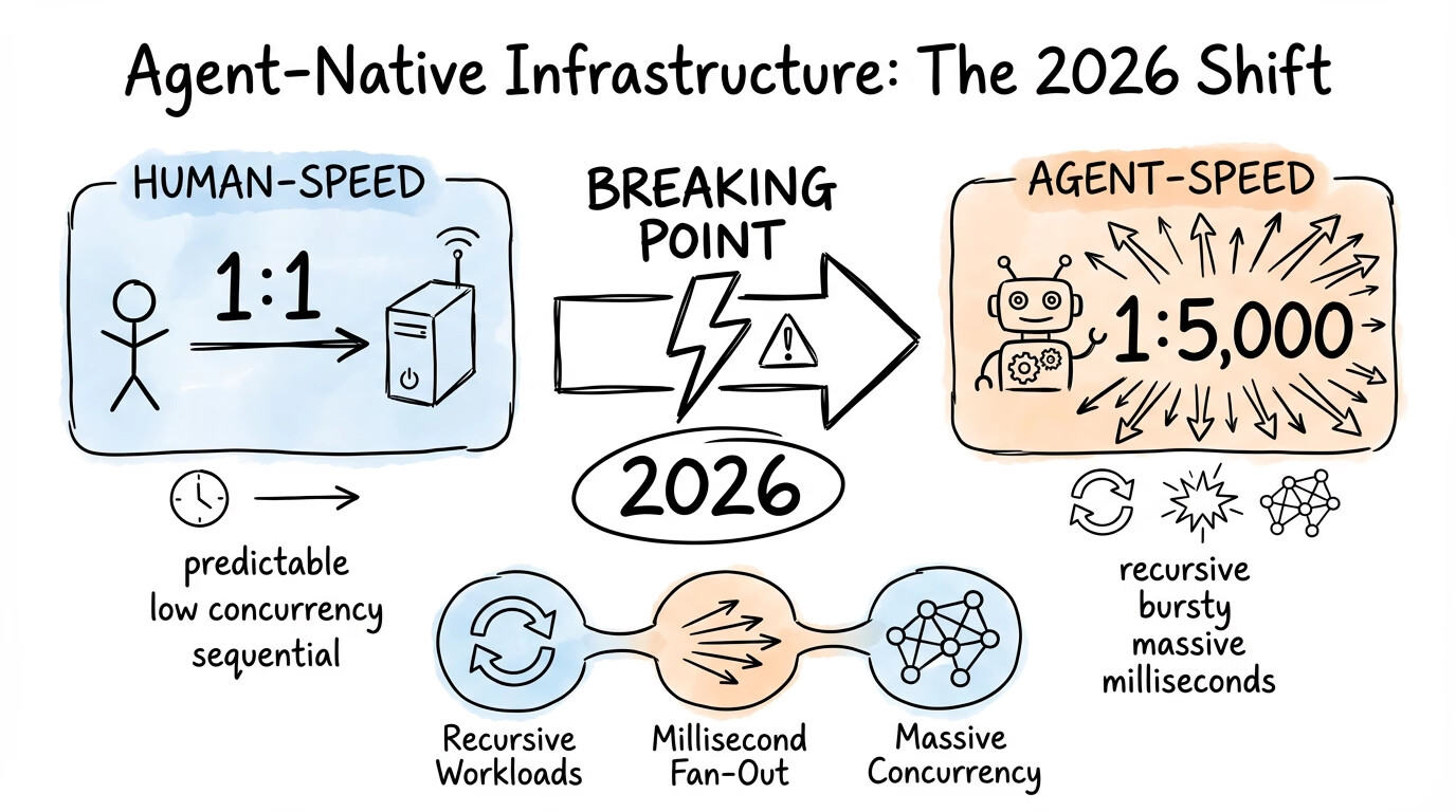 - 에이전트 네이티브 인프라는 대규모 병렬성, 비동기 실행, 재귀 워크로드를 기본 상태로 가정함