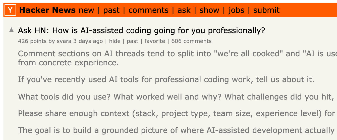AI 보조 코딩이 당신의 업무에 어떤 영향을 주고 있나요? (via HackerNews)