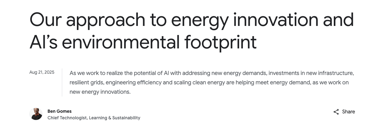 관련 블로그: Our approach to energy innovation and AI’s environmental footprint