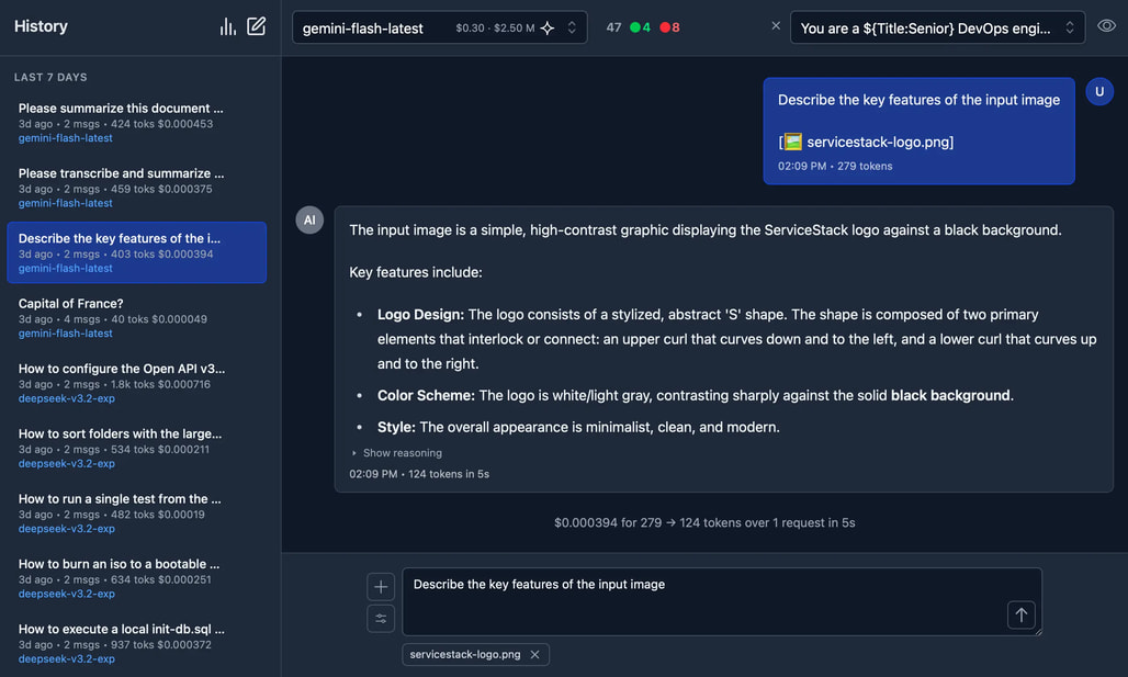 이미지, 오디오, 파일 입력 지원: 이미지 분석, 음성 텍스트 변환, PDF 문서 요약 등 다양한 형태의 데이터 포맷을 지원합니다. 또한, 시각/음성/문서 입력을 지원하는 모델을 자동으로 탐색 및 활용할 수 있도록 하며, 입력하는 데이터는 로컬 파일 및 원격 파일, base64 데이터 URI 형태 등을 모두 지원합니다.