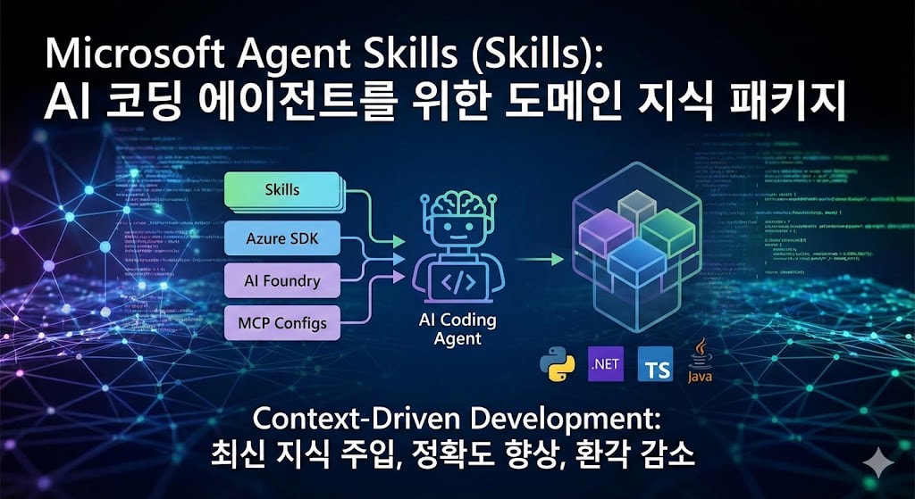 Microsoft가 공개한 Agent Skills 는 AI 코딩 에이전트(예: GitHub Copilot, Claude 등)가 Azure SDK 및 Microsoft AI Foundry와 같은 특정 도메인 지식을 정확하게 이해하고 활용할 수 있도록 돕는 모듈형 지식 패키지 및 MCP(Model Context Protocol) 구성 라이브러리입니다.