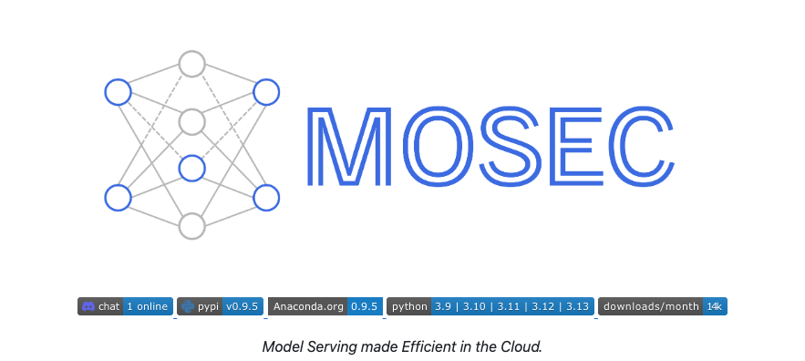 MOSEC (Model Serving made Efficient in the Cloud) 은 이러한 현실적 제약을 고려해 설계한 오픈소스 모델 서빙 프레임워크입니다. MOSEC은 고성능 모델 서빙을 위해 Rust의 성능과 Python의 사용성을 결합한 오픈소스 프레임워크로, 모델을 손쉽게 API 서비스 형태로 배포할 수 있도록 설계되었습니다.
