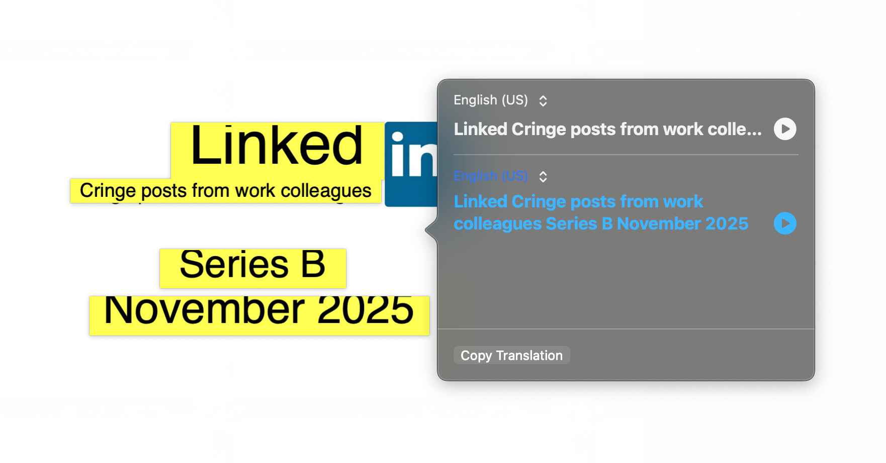nano-pdf edit linkedin-deck.pdf 1 "Change the tagline in the logo to 'Cringe posts from work colleagues' and update the date"