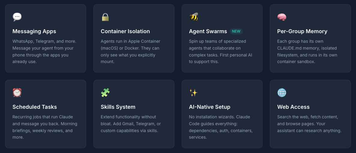 NanoClaw의 주요 특징