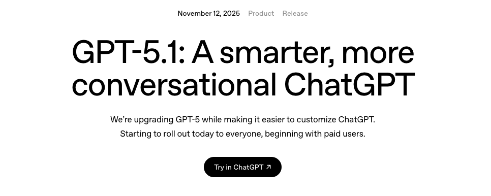 OpenAI의 GPT-5.1 모델 2종 출시 블로그