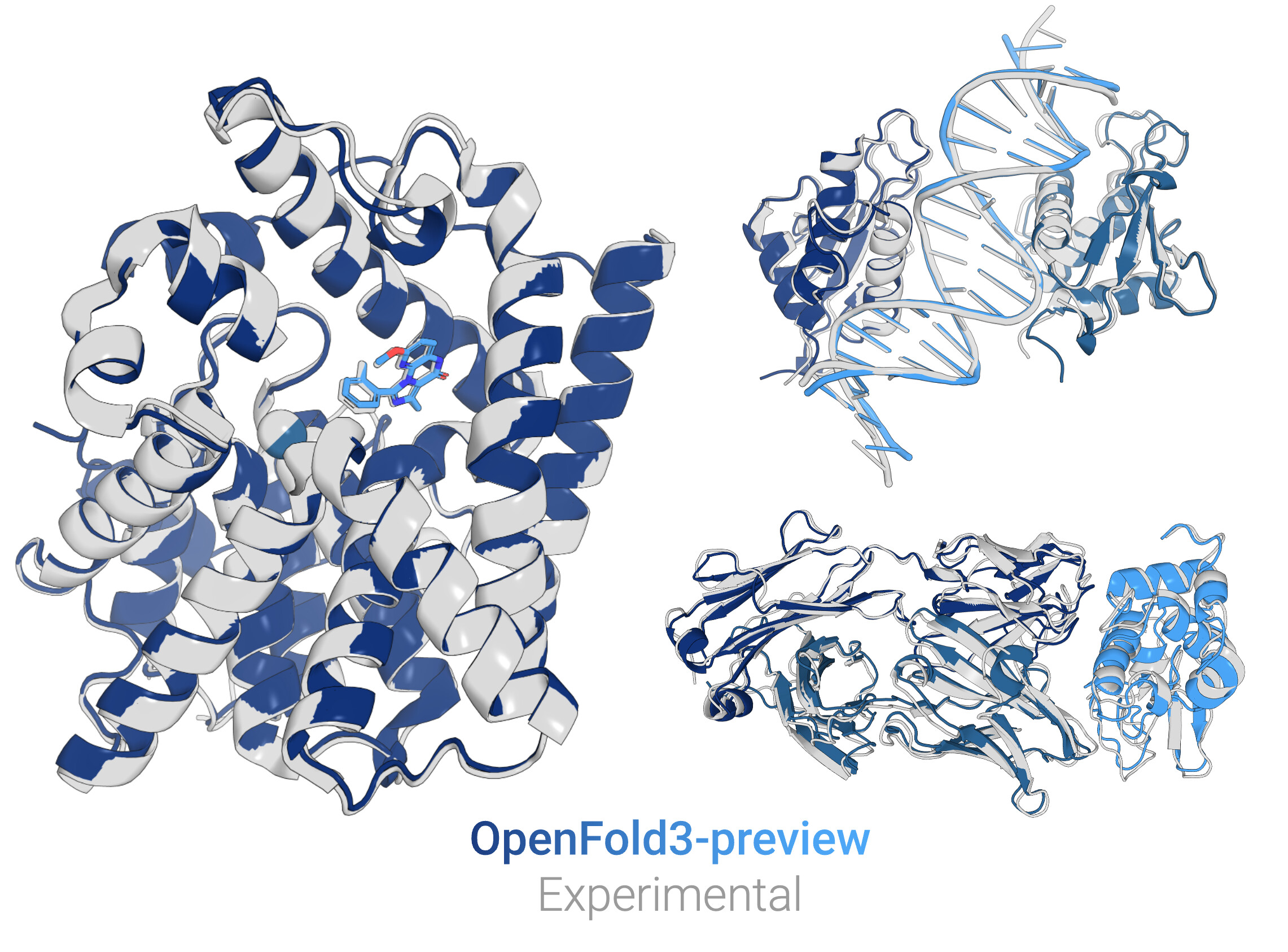 OpenFold3는 DeepMind의 AlphaFold2 및 AlphaFold-Multimer 모델을 완전하게 PyTorch 기반으로 재현한 OpenFold(2022) 프로젝트의 후속으로, RNA, DNA, 단백질 복합체, 그리고 단백질-리간드 상호작용까지 예측할 수 있도록 확장되었습니다.