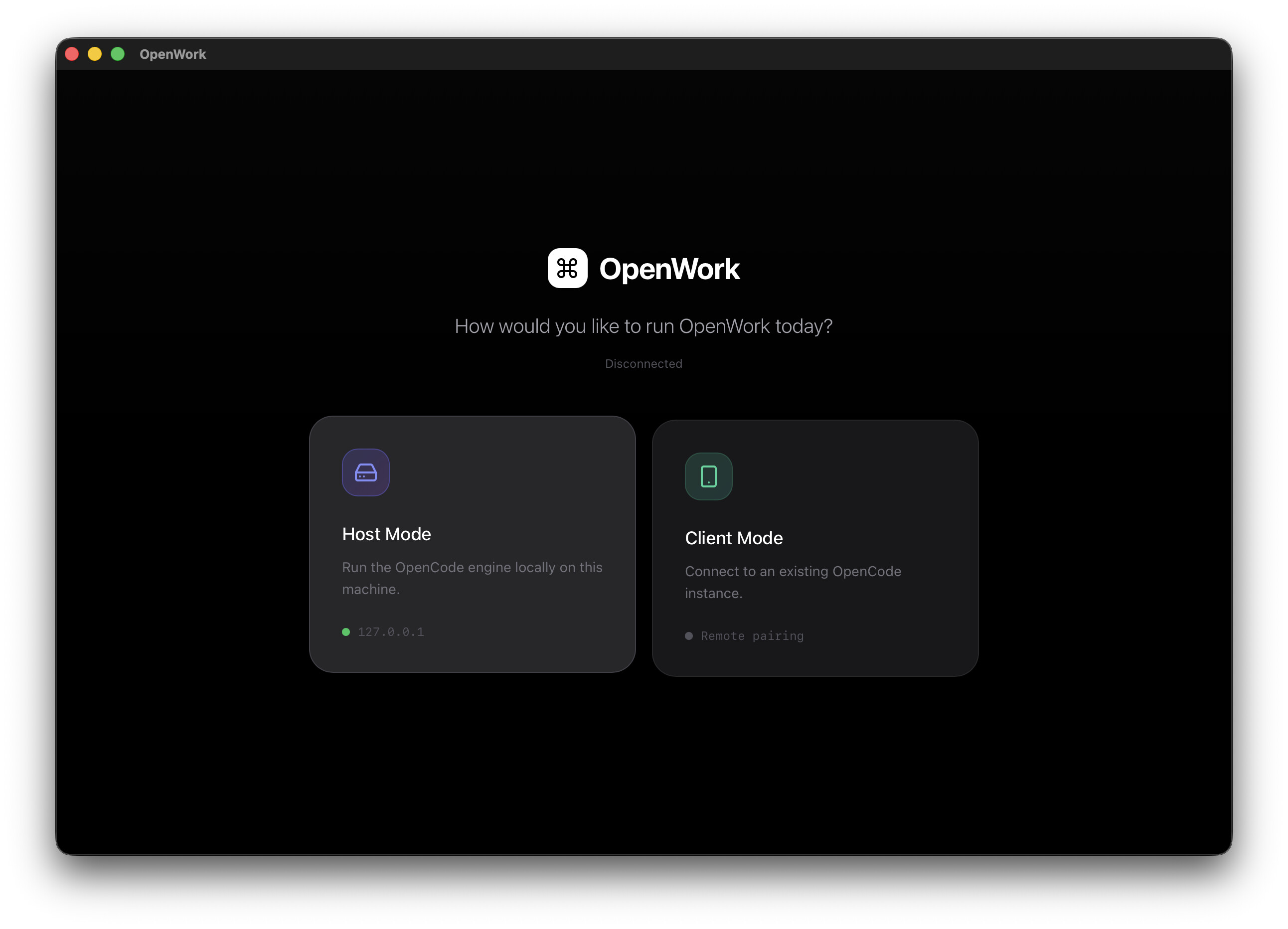 OpenWork는 OpenCode를 위한 UI 프로젝트이므로, 반드시 OpenCode가 설치 및 실행 가능해야 합니다.