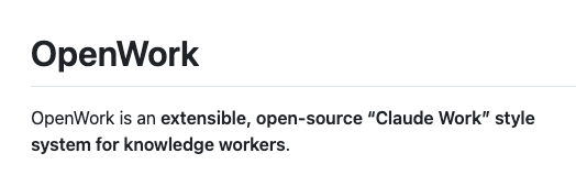 몇 일 전 소개한, 같은 이름의 Claude Cowork를 대체하는 목적의 Openwork과는 다른 프로젝트입니다)