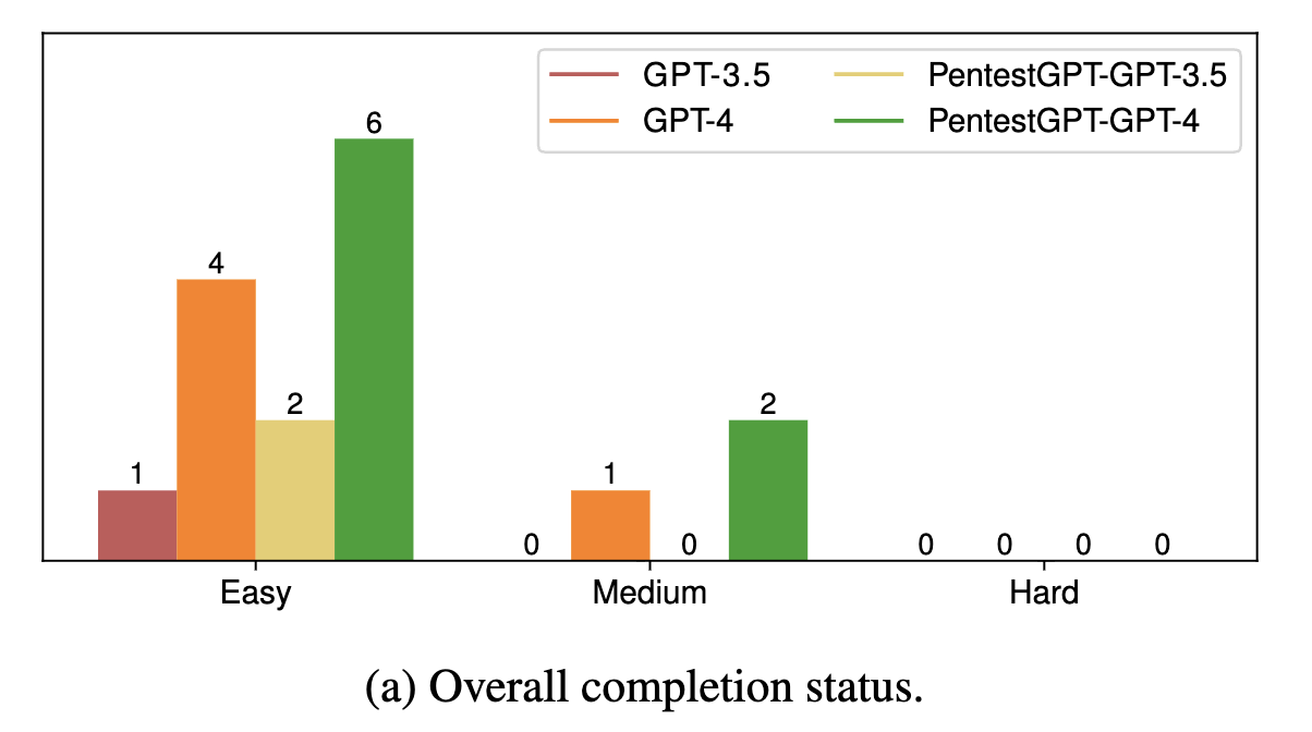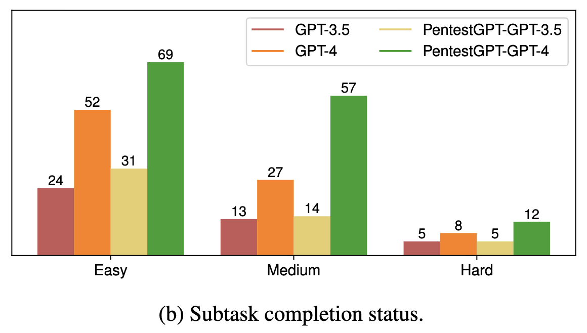 PentestGPT의 성능은 정량적인 벤치마크를 통해 입증되었습니다. 연구 논문에 따르면, 13개의 타겟 시스템과 182개의 하위 작업으로 구성된 자체 벤치마크 테스트에서 GPT-3.5를 단독으로 사용했을 때보다 약 228.6% 높은 하위 작업 완료율을 기록했습니다.