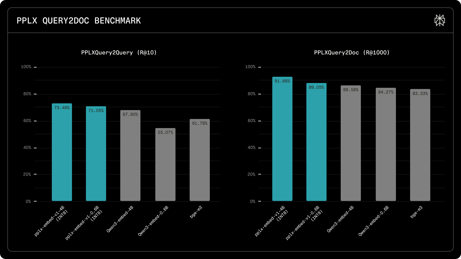 pplx-embed 모델 제품군은 다양한 공개 벤치마크와 내부 웹 스케일 평가에서 기존의 상용 및 오픈소스 모델들을 상회하는 성능을 입증했습니다.