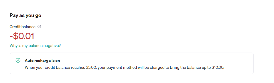 자동 충전 설정이 작동하지 않는 문제에 대해서는, OpenAI의 고객 지원이나 관련 FAQ를 확인하는 것이 가장 정확합니다. 자동 충전이 작동하지 않는 경우는 여러 가지가 있을 수 있으며, 계정 설정이나 결제 방법에 문제가 있을 수 있습니다.