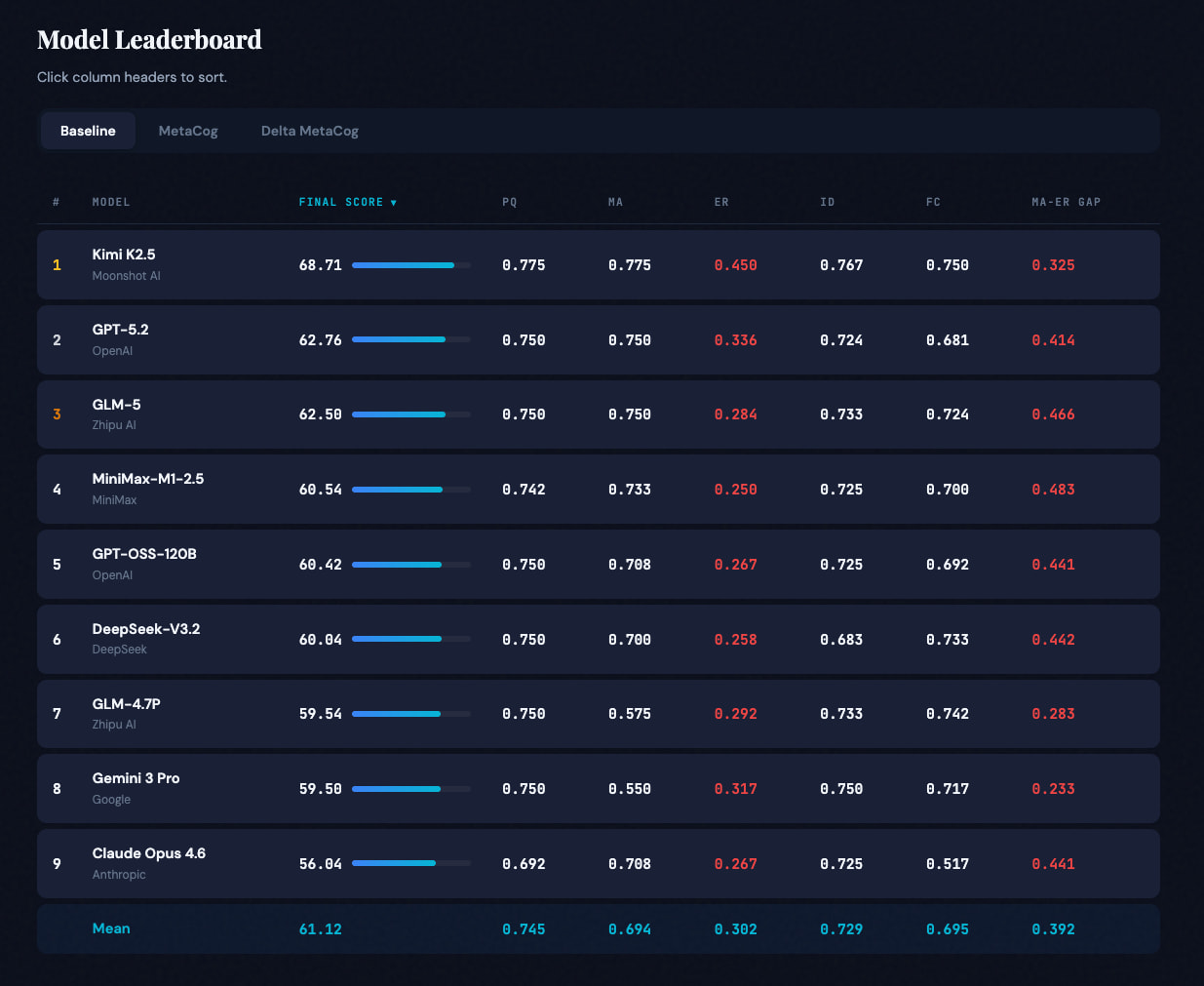 특히, FINAL Bench의 1,800개 평가 항목을 통해, 모델이 자신의 논리적 오류를 "인지할 수 있는 능력(MA, Metacognition Awareness, MA=0.694)"과 "실제로 궤도를 수정하는 능력(ER, Execution/Resolution, ER=0.302)" 사이에 치명적인 격차(MA-ER Gap = 0.392)가 존재함이 정량적으로 증명되었습니다.
