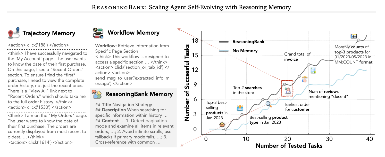 Google Research 팀은 ICLR 2026에 채택된 논문 "ReasoningBank: Scaling Agent Self-Evolving with Reasoning Memory"에서 이 두 가지 한계를 동시에 극복하는 새로운 에이전트 메모리 프레임워크인 ReasoningBank(GitHub 링크)를 제안합니다.