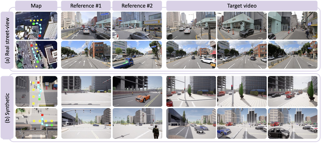 이는 생성해야 할 타겟 영상과 서로 다른 시간대에 촬영된 참조용 스트리트 뷰 이미지를 의도적으로 짝지어 모델을 학습시키는 방식입니다. 시간적 분리를 강제함으로써 모델은 일시적으로 머무는 객체들을 무시하고, 도로망이나 건물 같은 영구적이고 변하지 않는 공간의 기하학적 구조에만 온전히 집중하도록 유도됩니다.