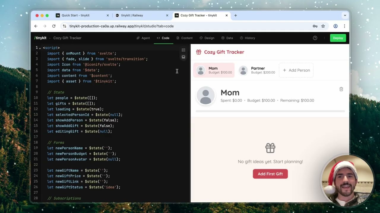 도메인/tinykit으로 접속하면 실행 중인 앱의 소스 코드를 바로 수정할 수 있는 에디터가 열립니다. -